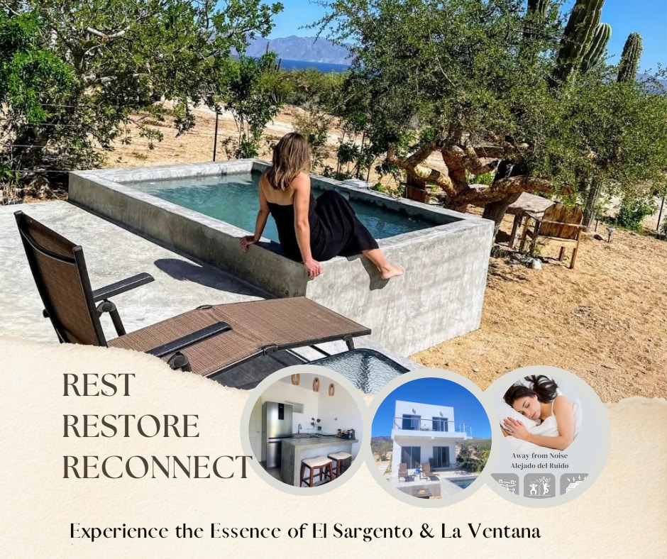 Enjoy our luxury villa in Baja California, perfect for a couple. It has a bedroom with two queen size beds, living room with equipped kitchen and dining area, and bathroom with ample shower. Relax on the terrace overlooking the garden and pool, or the sundeck and hammock. Enjoy your star nights around the campfire and have breakfast in the cactus garden. Ideal location with a view of the bay and access to outdoor activities. Your perfect haven of comfort and tranquility!