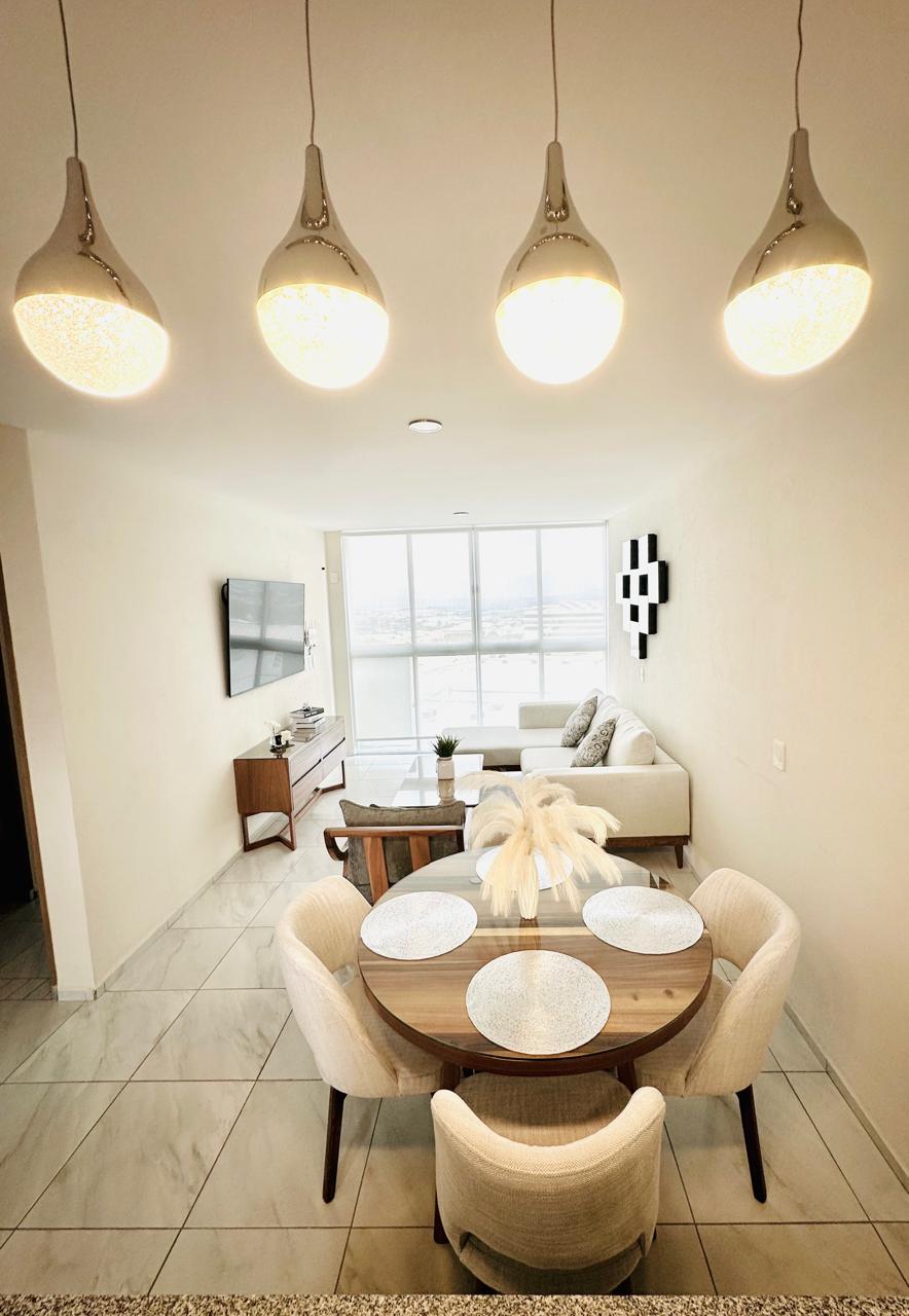 Luxurious and beautiful apartment with art deco design and furniture, relax and enjoy of the view because its in a 9th floor, it has amenities such as a scenic pool, gym, panoramic roof top, social room, bbq grills, security and elevators. The apartment has one room with a queen size bed, one full bathroom, laundry room, full kitchen, refrigerator with ice machine and cold water dispenser. We provide 2 towels for shower and 2 towels for the pool. We also offer tours to city and magic towns.