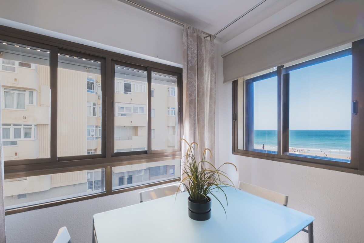 Bonito estudio reformado en pleno Paseo Marítimo de Cádiz (playa Victoria) con Wifi y con aire acondicionado y perfectamente equipado (nespresso,microondas,sartenes,ollas,platos,vasos,tazas...) Cama de 135cm para 2 personas con colchón de viscolástica. Dispone de sábanas,toallas de baño, sillas de playa y sombrilla. Edificio con ascensor. Acceso directo a la playa. Muy limpio. Inscrito en el Registro de Turismo RTA: VFT/CA/00183