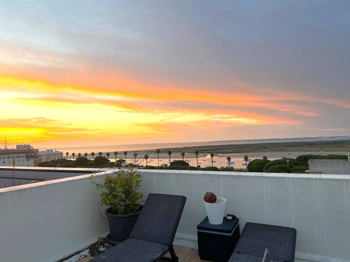 Welcome to our panoramic ocean view apartment "La Vista Azul". Immerse yourself in natural light and the refreshing sea breeze. With the beautiful "La Cachucha" beach just steps away, you can enjoy the serene atmosphere of our peculiar location. On our open-view terrace, you can witness breathtaking sunset and unwind after a day of exploration. Enjoy your stay in tranquil Puerto Real, nestled in the heart of the Cadiz Bay, from where you can easily explore the surrounding beauty. VUT/CA/19756