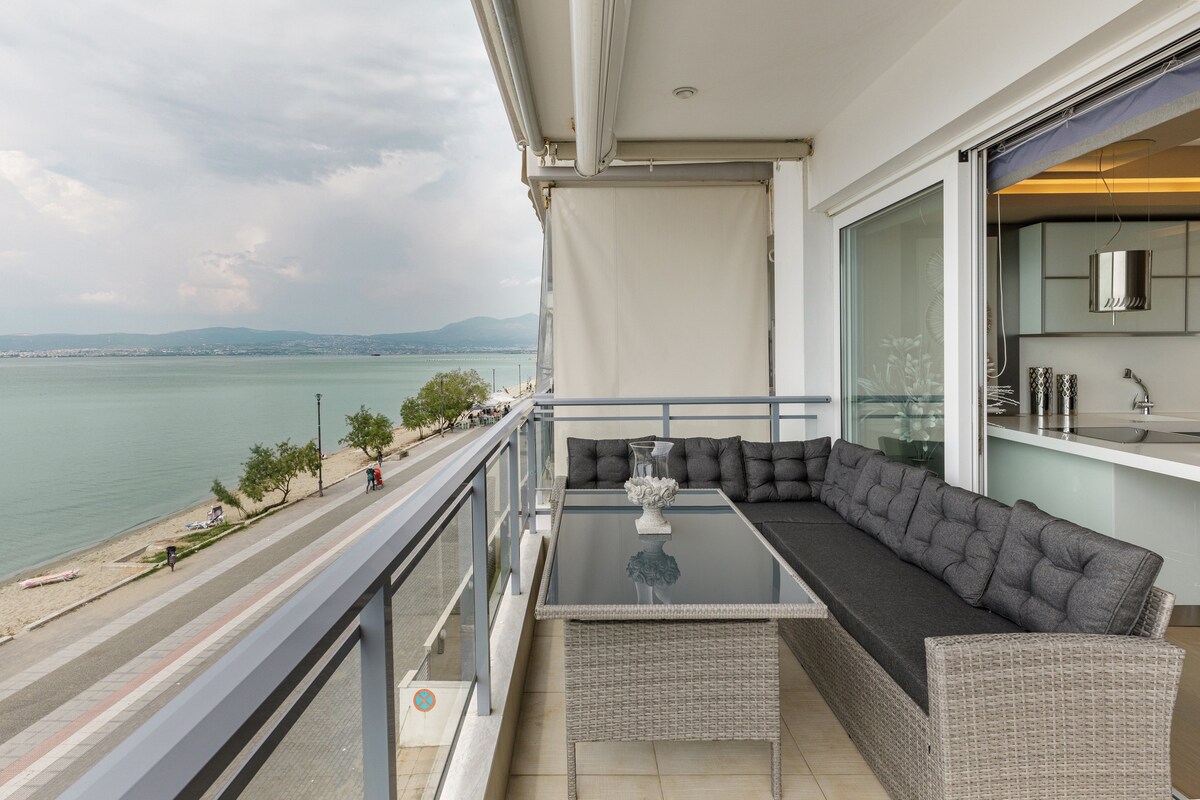 A beautiful, spacy, light rooftop apartment with views of the sea and mountain. 3 minutes from a blue star beach and a 5 star hotel. It has descent furniture, tableware, fast WIFI, TV channels from all over the world, HIFI system, air-conditioning, gas heathing, private parking, three balconies, elevator, intercom and a big walk-in closet. Close to Gerovassiliou (wine house), airport (15min), boat to the city centre in summer (45min). For a small fee we can pick you up from the airport.