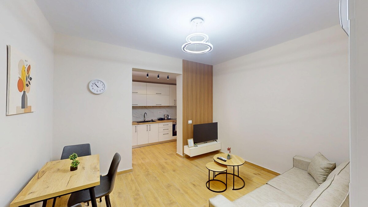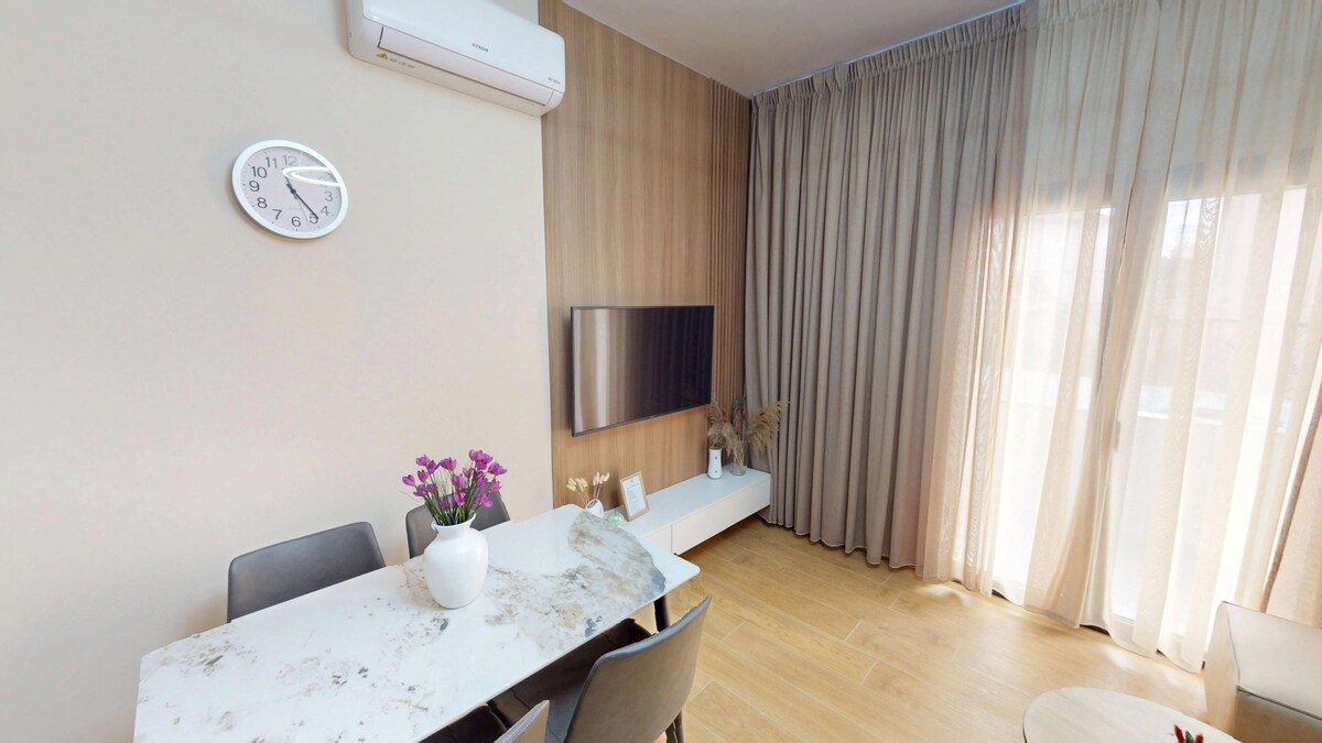 Welcome to our modern and cozy Airbnb apartment, located 5 min walk from city center! This spacious 75-square-meter retreat features one bedroom and walking closet , one full bathroom, an equipped kitchen, a comfortable living room, one balcony for you to enjoy the city’s sunrise and sunset. With its sleek design and ample space, including a dining area, it's the perfect home away from home for your stay in the heart of the city. No Pets, no smoking Can't wait to welcome you!