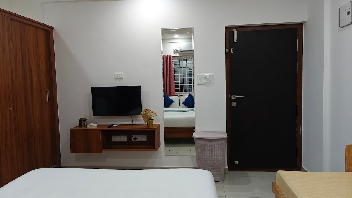 The space - 🏢Apartment Building 🛋️ fifth Floor 🚿Bathroom: Ensuite 📹CCTV: Outside the Apartment 🔌 power backup available 🧺 washing machine 🪥 dental kits are available ( Pls ask the caretaker if not provided ) Pls note - washing machine is not available inside the property It is placed in the terrace ( one floor above ) The caretaker will be more than happy to run the machine for u WiFi: 100 Mbps approx speed The Parking space: 2/4 wheelers parking available on premises.