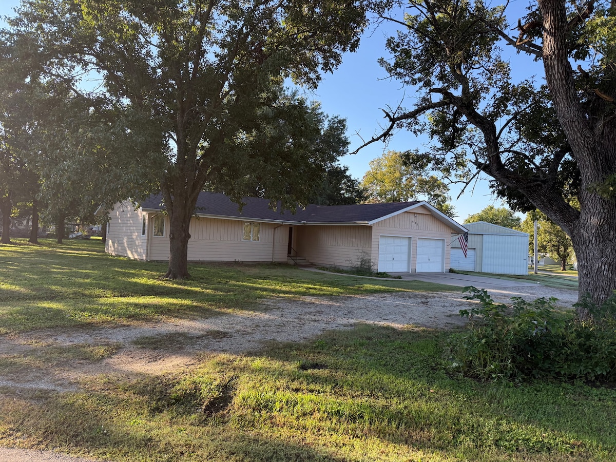 Relax with the whole family at this peaceful and spacious 3 bedroom cottage located in Southeastern Kansas, Howard, KS, Elk County. It has all the amenities of home. Great for large groups of people and/or families. You will also have access to all the amenities at Buck's Cabins 10 acres of relaxation. Fishing, don't need a license since it is on private property, paddle boats, swimming with life jackets, and just relaxing by the pond. Located 5 blocks from the Pine St. Cottage. 305 N Paw Paw