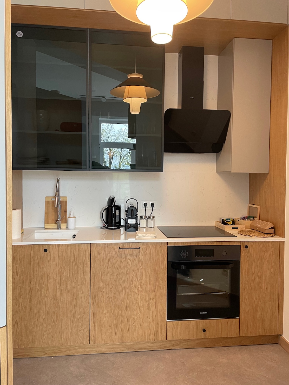 An apartment in the center of Ełk, right on the shore of the lake, by the promenade with numerous pubs and restaurants serving local specialties. Spacious living room with balcony, air conditioning, fully equipped kitchen, high-speed internet, TV, private infrared sauna and comfortable bedroom. Perfect for relaxation, remote work and Masurian adventures!