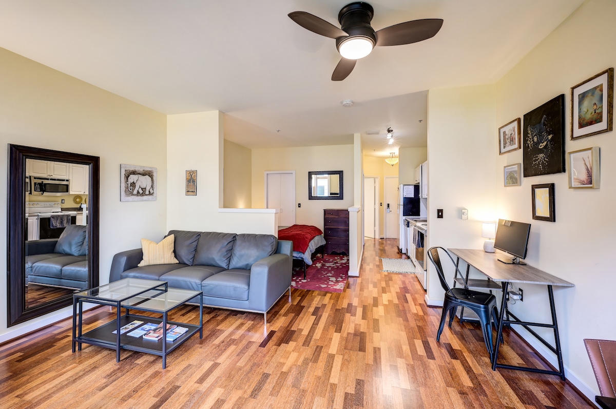 Enjoy a stylish roost for two, as this nest comes fully furnished with a queen bed, a full kitchen, a private bathroom, and dining area with built-in bench seating. Our guests love the luxurious rain-head shower, plush organic Avocado green mattress, and having access to our shared gym and patio. It’s the perfect place to refresh with a drink after exploring the peaceful Fremont neighborhood.