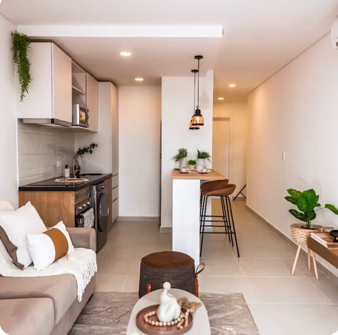 Departamento moderno a solo 5 cuadras de la Costanera de Encarnación. Ideal para descansar y disfrutar: ambiente climatizado, cama cómoda, WiFi rápido, cocina equipada. Zona segura, cerca de restaurantes, bares y el río.