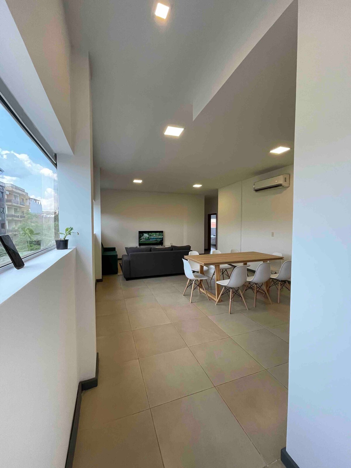This beautiful furnished apartment in the Costanera Encarnación shopping area, balcony overlooking the river, has two comfortable rooms, one en suite with private bathroom, furnished kitchen 🍽️ and integrated dining room, which creates a spacious and modern atmosphere. It also offers parking. It's a great opportunity for those looking for comfort. Extra services: -Wifi -3 SMART TV - Basic kitchen utensils -Electric oven -Electric cooker -Microwave - Washing machine -Kettle - Blender