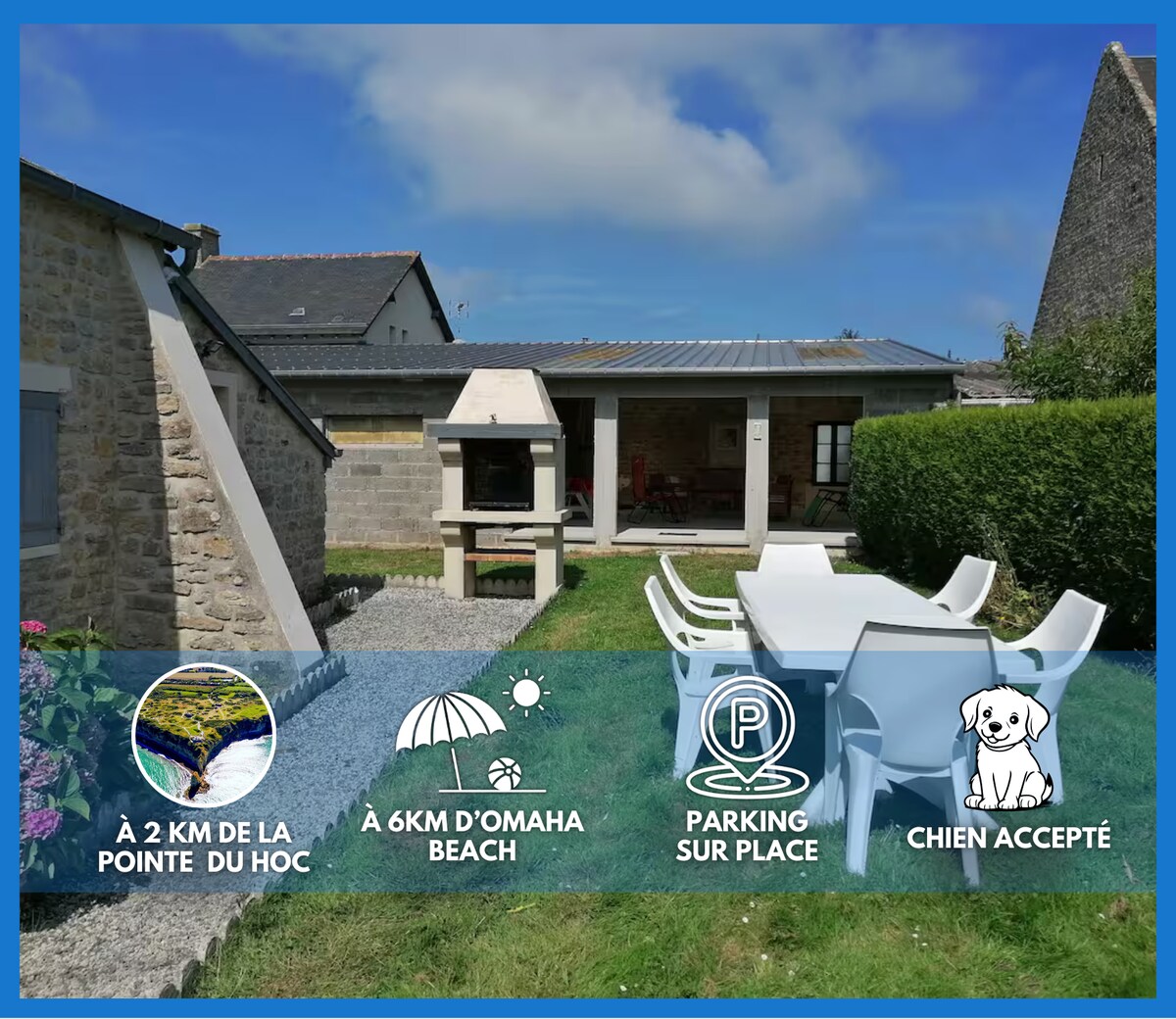 Le So Wild is a cozy cottage with a closed garden facing each other, located a 10-minute walk to Omaha Beach. Ideal house for families, it has an Arcade game terminal, ping pong table, board games, toys, beach games. Located in Vierville-sur-Mer, 800 m from the beach, in the heart of the Omaha area, it's the perfect base for exploring iconic D-Day sites. Beds made on arrival, towels provided Dogs accepted