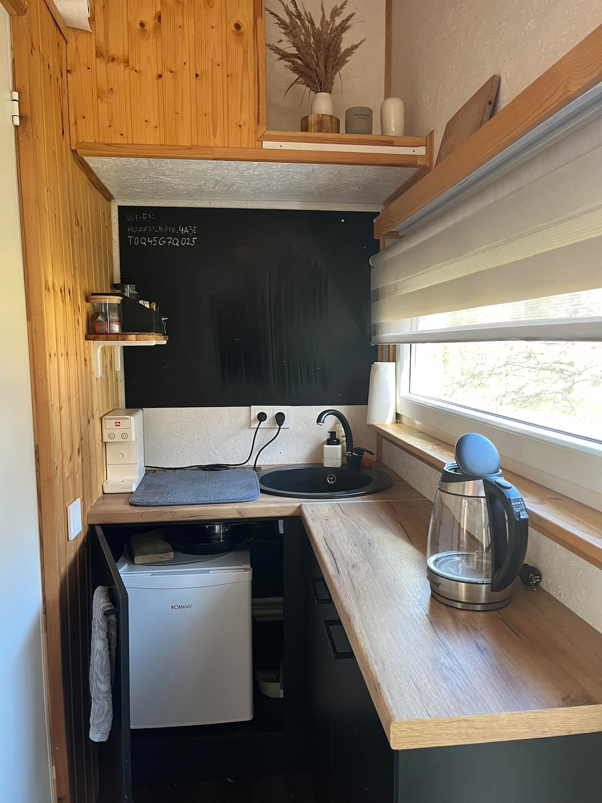 Namiņa sajūta tiek noķerta jau ieejot pa mazajām kāpnītēm. Pa logu vērojot debess pamali, kur saule pazūd priedēs, vai ziemas spelgonī sildoties karstajā kublā un ļaujoties sniega peldēm pēcāk. Šeit izbaudīsi mierpilnu laiku ar sevi. Baudot jūras šalkoņas skaņas un mostoties putnu čalošanā. Vakara tēju malkojot, vērties saules rietā.