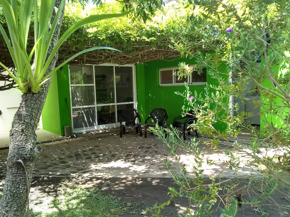 Unique house, wooded, wisteria patio, dining room, kitchen overlooking the greenery. One main bedroom, full bathroom with XL bathtub, second small bedroom, desk, you can work independently while the family rests. It has a comfortable place to have a barbecue or take a dip and enjoy the sun and greenery on a large plot of land. We accept your pet if it is good with plants and the house.