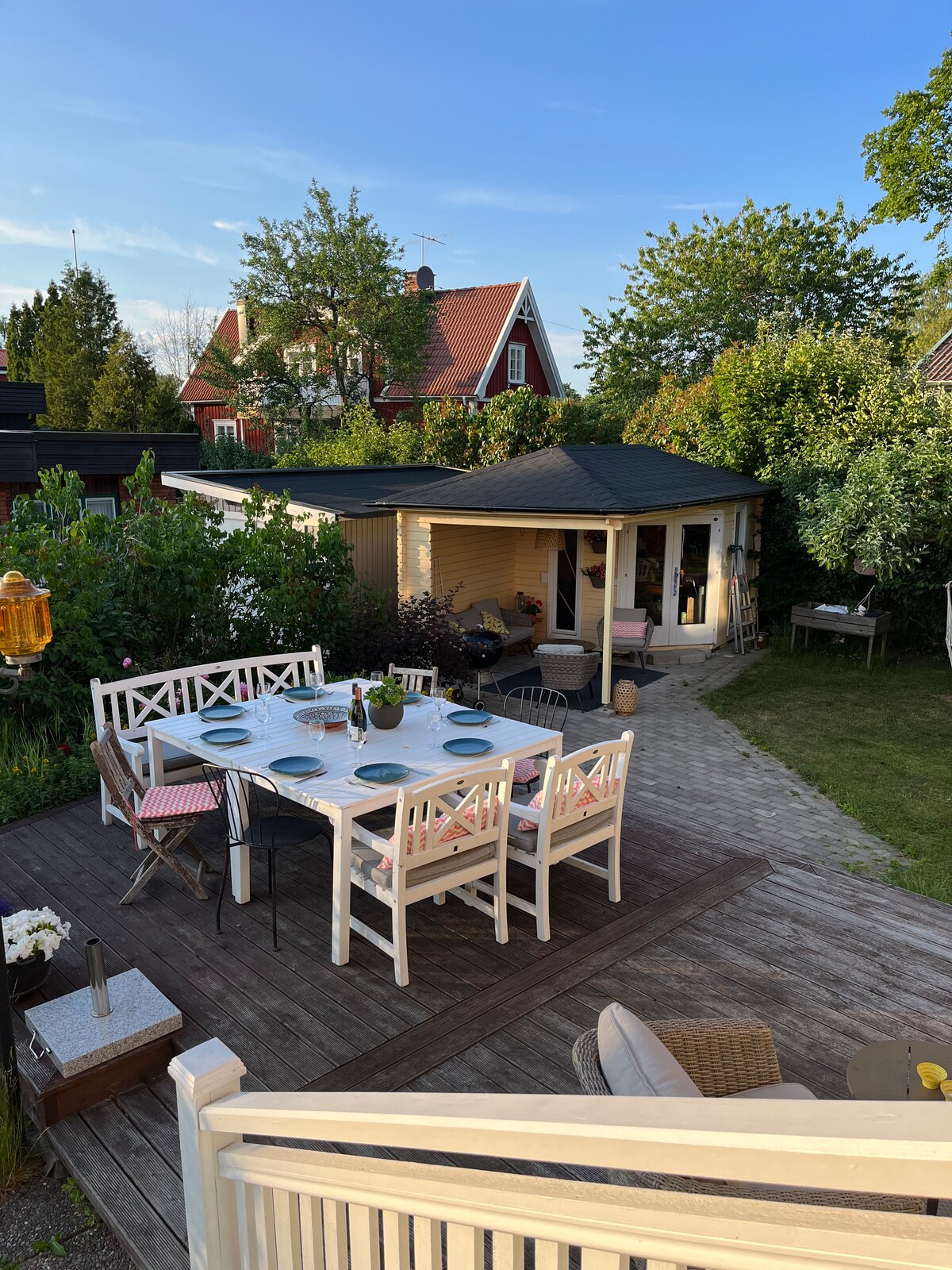 Kick back and relax in this calm, stylish space. The house is 27 sqm plus a cozy sleeping loft of 6 sqm with a large double bed. There is access to a complete kitchen, sofa group and bathroom with washing machine. Outside, there is a small terrace in the southwest. The house is in a quiet and nice villa area in Örby, southern Stockholm. Good transportation by bus, subway and commuter train. Proximity to grocery store, 6-minute walk, or shopping center, 10-12 minute walk.