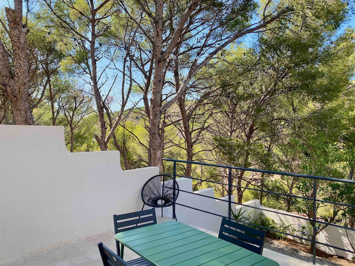 Escape to the breathtaking Blue Coast and experience Provence in a studio thoughtfully designed by architect owners. Wake up to stunning hill & sea views from your private terrace and enjoy all the modern comforts. Walk to the sandy beach and explore the coves with a complimentary sea kayak. Conveniently located 10 minutes from the local train station and 25 minutes from Marseille airport with free parking. An unforgettable adventure awaits on the Blue Coast of Provence!
