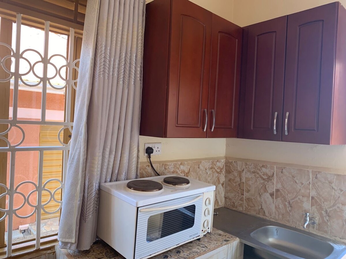 Peaceful, fully furnished studio in Minister’s Village, Ntinda. Features a private bathroom with hot water, kitchenette, washing machine, fast Wi-Fi, and top-notch security. Step into a lush garden with fruits, veggies, and a cozy gazebo—ideal for yoga, morning coffee, or reading. Located near banks, supermarkets, malls, restaurants, and public transport. Perfect for solo travellers , digital nomads, or business stays. A quiet, green escape just minutes from Kampala’s city center.l
