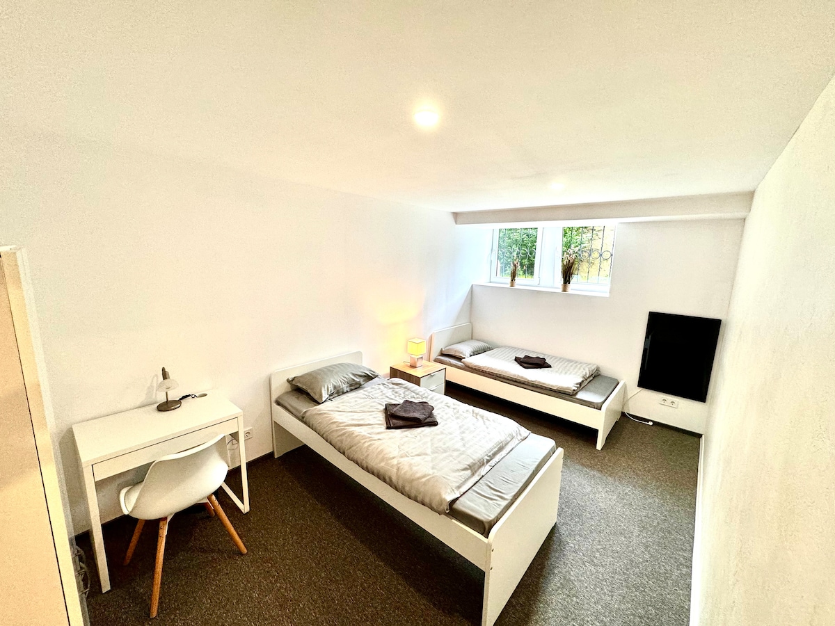 Enjoy a stay in our quiet, second row guesthouse centrally located in Ettlingen. Our apartment, completely renovated and newly furnished in 2021, is located on the ground floor of a small guest house, which you will occupy alone. The parking space is right in front of the house on our property. If you prefer something more spacious, you can book our lovingly furnished bedroom/study on the 2nd floor: https://abnb.me/80TAd03SAub