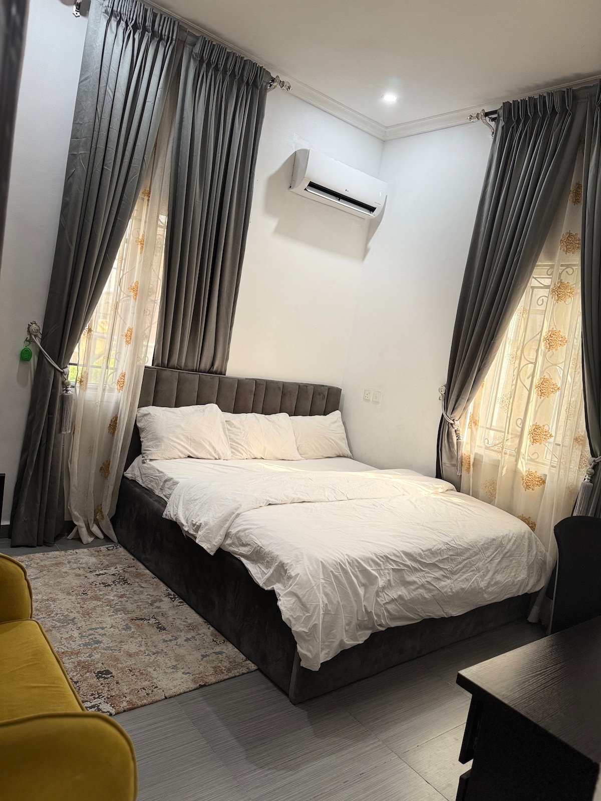 This unique place has a style all its own. It’s a 1-bedroom and sitting room serviced apartment. Amenities include ; - 24/7 power supply - Smoke extractor -Microwave - CCTV camera - DSTV/Netflix -TV console -water heater - snooker board - table tennis - washing machine - Large parking space - Reading chairs and tables - Gas cooker -Freezer