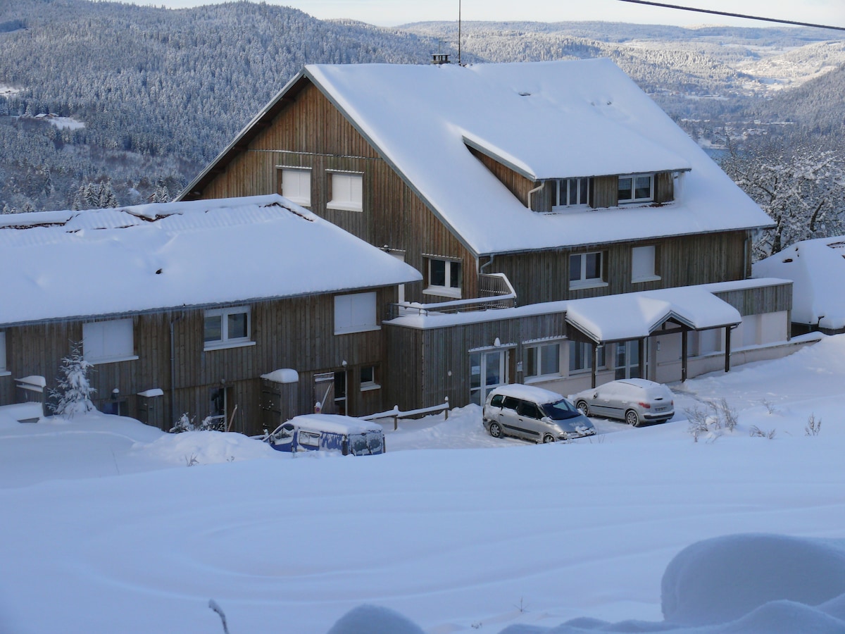 Between lakes and mountains enjoy winter and summer. Apartment at the foot of the largest ski area in eastern France alt 955m. Ideal for couples,families, nature lovers, hikers. View of the Alpine and Nordic ski slopes,and departure of snowshoe or pedestrian circuits,from the apartment. 10 minutes from the Bresse centre,( shops,swimming pool,ice rink,restaurant,etc.) and 10 minutes from Gérardmer(lakes), Vosges peaks 3 km or 20 to 25 minutes on foot.