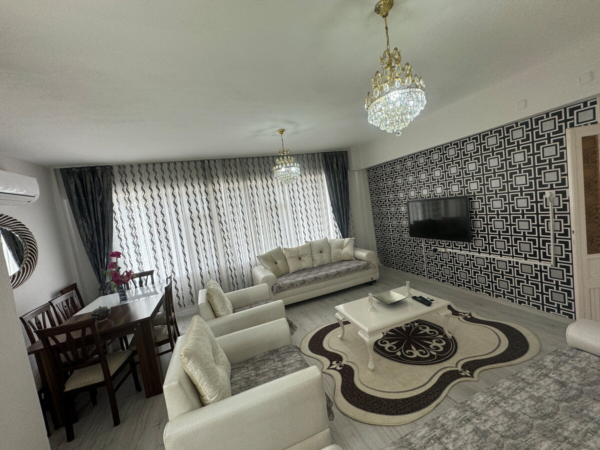 You can relax as a family in this peaceful accommodation. You can have a barbecue in the garden, relax on the swings for adults and children, and you can reach the bazaar, market and beach/sea in 3-5 minutes on foot. The new building is earthquake-safe and has a garden. It appeals to families. We are ready with an understanding that emphasizes love and respect. We are waiting for you.
