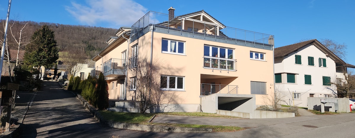 Spacious garden apartment in a new building with a covered garden terrace facing south and a garden terrace facing west for plenty of evening sun. Two bathrooms and your own washing machine/dryer complete the offer. The house with its own underground garage is located at the end of the residential zone and provides opportunities for walks and sports on the nearby Aare River or in the Jura Heights next door. The house and equipment are new. Upscale place to stay for business travelers such as family vacations, etc. We look forward to your good time here.
