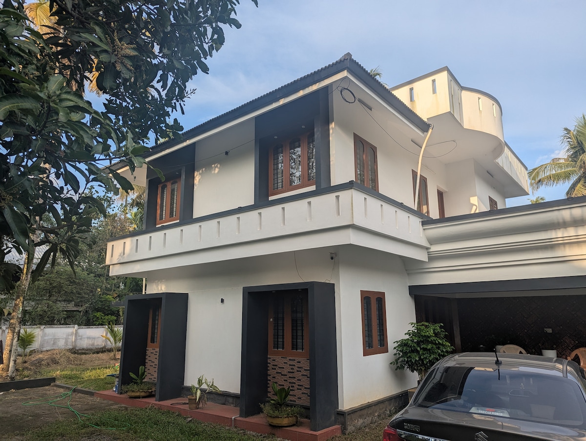 Have fun with the whole family at this stylish place.Its really full of green ,good for a whole family,close to the kara beach just 1.3 km and 1.2 km to the central kodungallur ,It's really a wonderful place spacious with a backyard,also a garden at front with spacious parking.