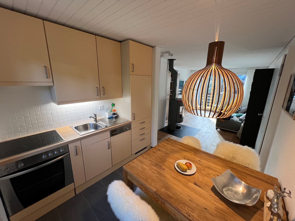 The quiet 2.5-room apartment offers everything you need for a relaxing stay. The spacious living and dining area invites you to linger, while the balcony offers a magnificent view of the Valais Alps. The sofa in the living room can be used as a bed if necessary, so that 3 people can comfortably fit in the apartment. The apartment has a free parking space. The bus stop is in the immediate vicinity.