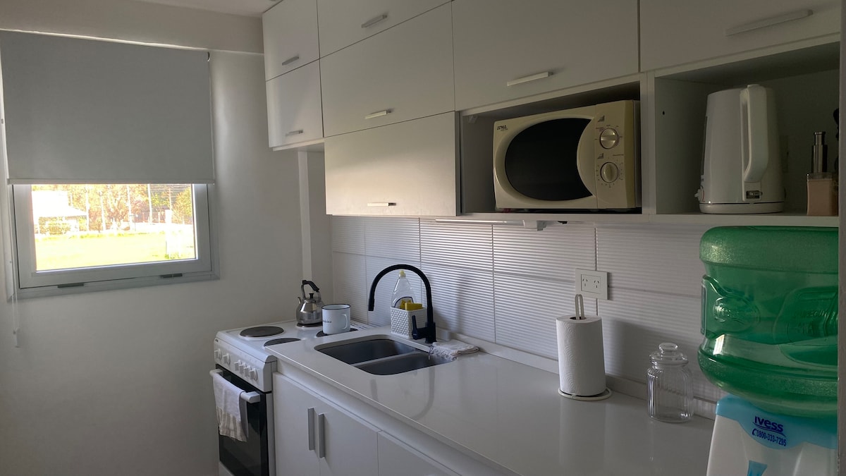 Experience comfort in this studio apartment with amenities, modern and fully equipped just 15 minutes from Ezeiza International Airport, located in the best area of Canning, just 150 meters from Las Toscas Shopping and Paseo Plaza Canning. Enjoy the gastronomic pole and the wide range of services, cinemas and theater. This accommodation offers a warm and functional space, ideal for rest, work stays or as a strategic point near the airport.