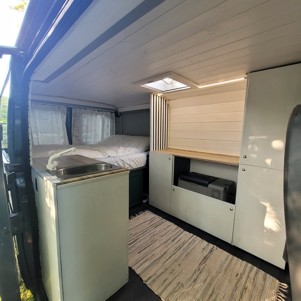 2 sleeps 3. There is a small trek gas stove, USB charging point, Webasto, tap water(20l), fridge. Electricity comes from a solar panel on the roof of the van. The washing facility is provided by a camping shower and a shower tent outside the camper. A Porta Potty hike toilet is stored in the toilet for the toilet, there is no separate toilet. Manual gearbox, diesel fuel, requires category B driving right. Rental agreement, deposit of 200 euros which will be returned upon return of the car and in the absence of any complaints.