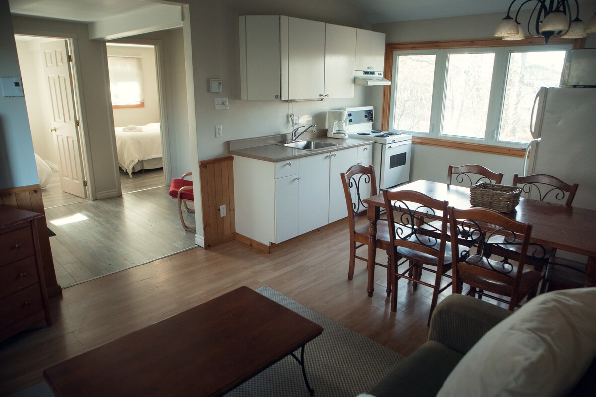 Brand new pet friendly holiday getaway now available in the heart of downtown Knowlton! Escape the hustle & bustle of the city for an Eastern Townships nature break where you can go hiking, skiing, snowshoeing or skate on Brome Lake. Meet artisans, food producers and shopkeepers. Sample gourmet food, local cheese, microbreweries and discover the numerous wineries on the wine tour. Go antiquing or simply luxuriate in one of our many surrounding Scandinavian Spas.