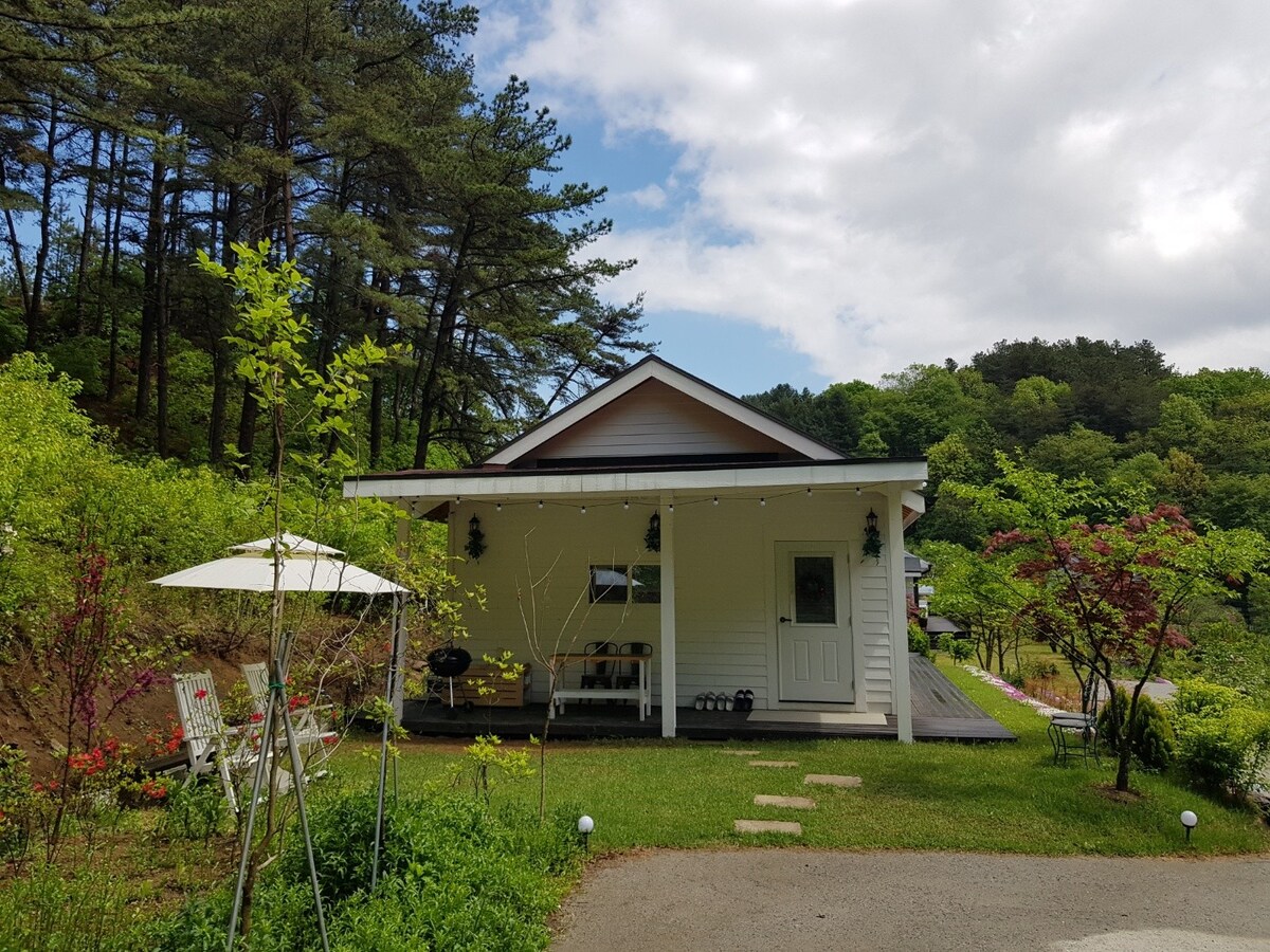 ☆☆ In spring, you can take a walk with your family in the garden full of flowers, in summer, you can use the outdoor children's swimming pool alone without cost, with the sound of refreshing water flowing in the valley, and in autumn, you can enjoy the cool breeze and colorful leaves blowing from the valley. In winter, you can roast sweet potato nights on a campfire, and you can use a barbecue grill that can be used without cost. When it snows, walk down the path with your friends. ☆☆ The 76m2 eco-friendly wooden house is fully equipped with amenities.In the hot summer, there are 2 air conditioners and fans in the living room and bedroom, and a Duratex cooling pad is also prepared on the bed. In addition, we prepared a Kuchen rice cooker and rice in the refrigerator so that you don't have to buy a half-cooked rice. Please come and prepare food at any time and spend a comfortable healing time. ☆☆ There are Hwayang Valley, Seolunsan, Gongrimsa, and Sanmagi Old Road in the nearby streets, and there are Nonghyup, a large supermarket, Cheongcheon Traditional Market, a forest cafe, and a restaurant where you can have a delicious meal within 5 minutes.