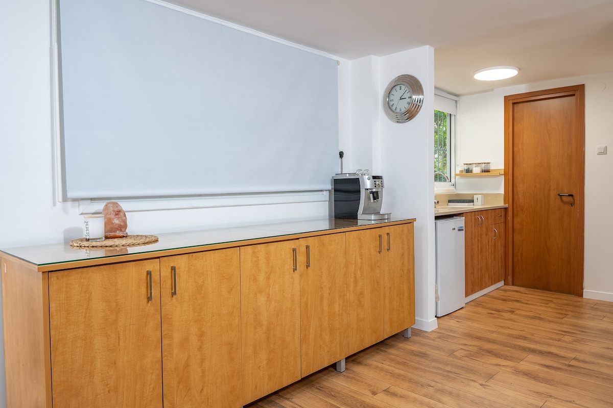 Welcome to the Tel Mond Suite Complex, located in the heart of the Sharon region. The suite features two bedrooms, each with a double bed and a wardrobe. Its central location offers convenient access to trips around the Central and Sharon areas, with a variety of nearby attractions and entertainment options – we’ll be happy to recommend some especially great places. The unit includes a fully equipped kitchenette, a living room with a TV, and a dining area. It can accommodate up to 6 guests.