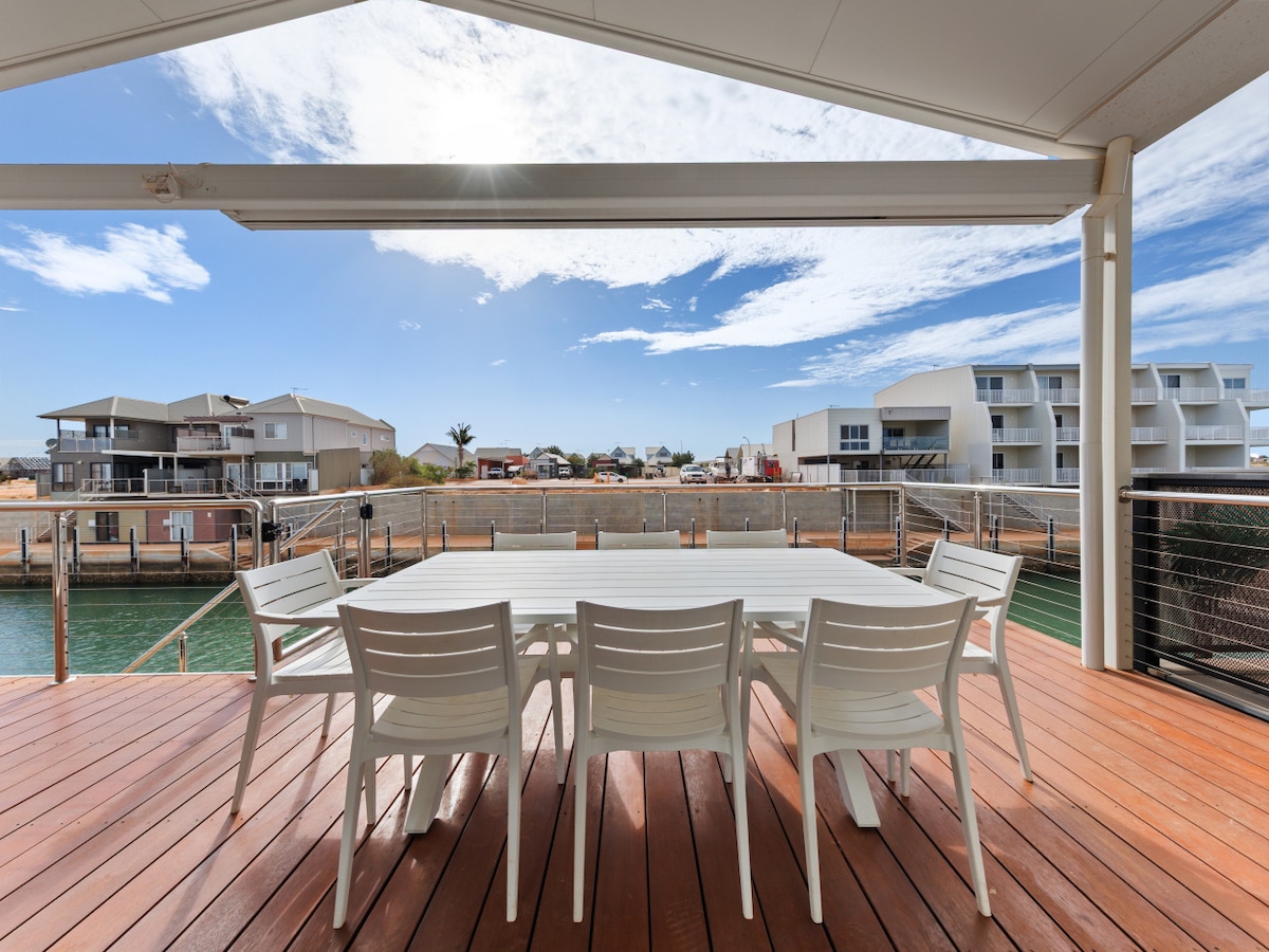 Welcome to your home away from home in beautiful Exmouth! Situated right on the canal, this spacious two-storey home offers the ultimate experience for those looking to relax, fish, or head out on the water. With your own private jetty, it’s ideal for guests bringing a boat or wanting waterfront access.