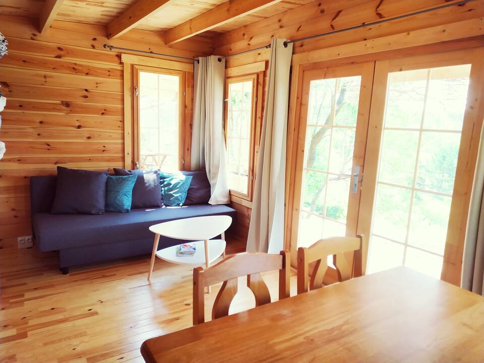 For an instinctive desire to feel good. Come and recharge your batteries in the heart of nature in a trapper's cabin. The forest its smells, the sky, the sound of water. Take a leap in time, reclaim the past to better understand our modernity. A trapper's cabin in the middle of nature, composed of a kitchen area, dining area and living room. Upstairs, double bed. Remember to bring your linens and towels.