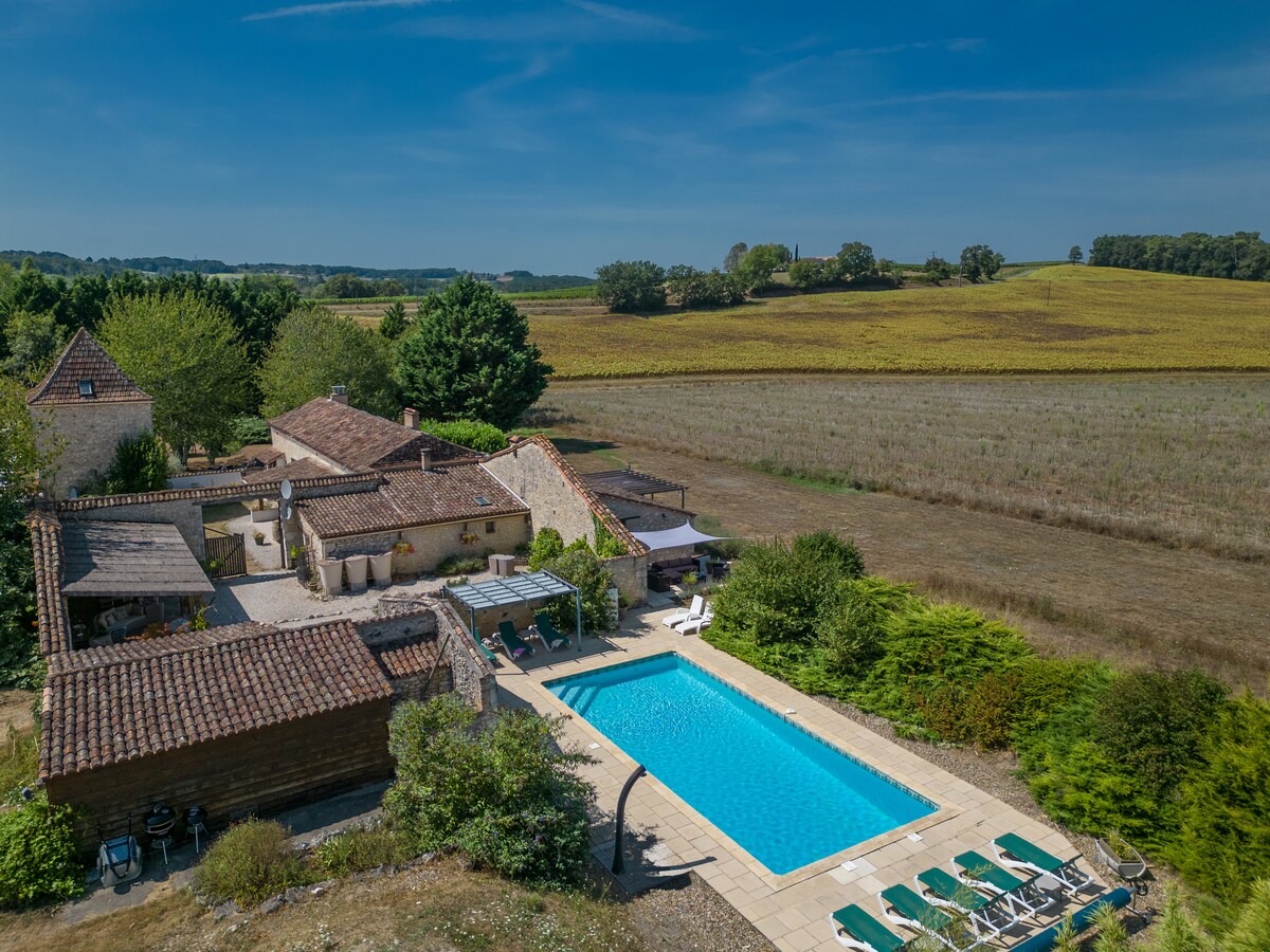 This country house near Dordogne is ideal for a family with kids and friends In the heart of unspoiled nature without any noise. Fully secured 9x4 private pool, several terraces, outdoor games, relaxation, plancha, barbecue Our 2 donkeys will stay in a meadow near the house. The Lot et Garonne is full of history, medieval villages, gastronomy, various activities.