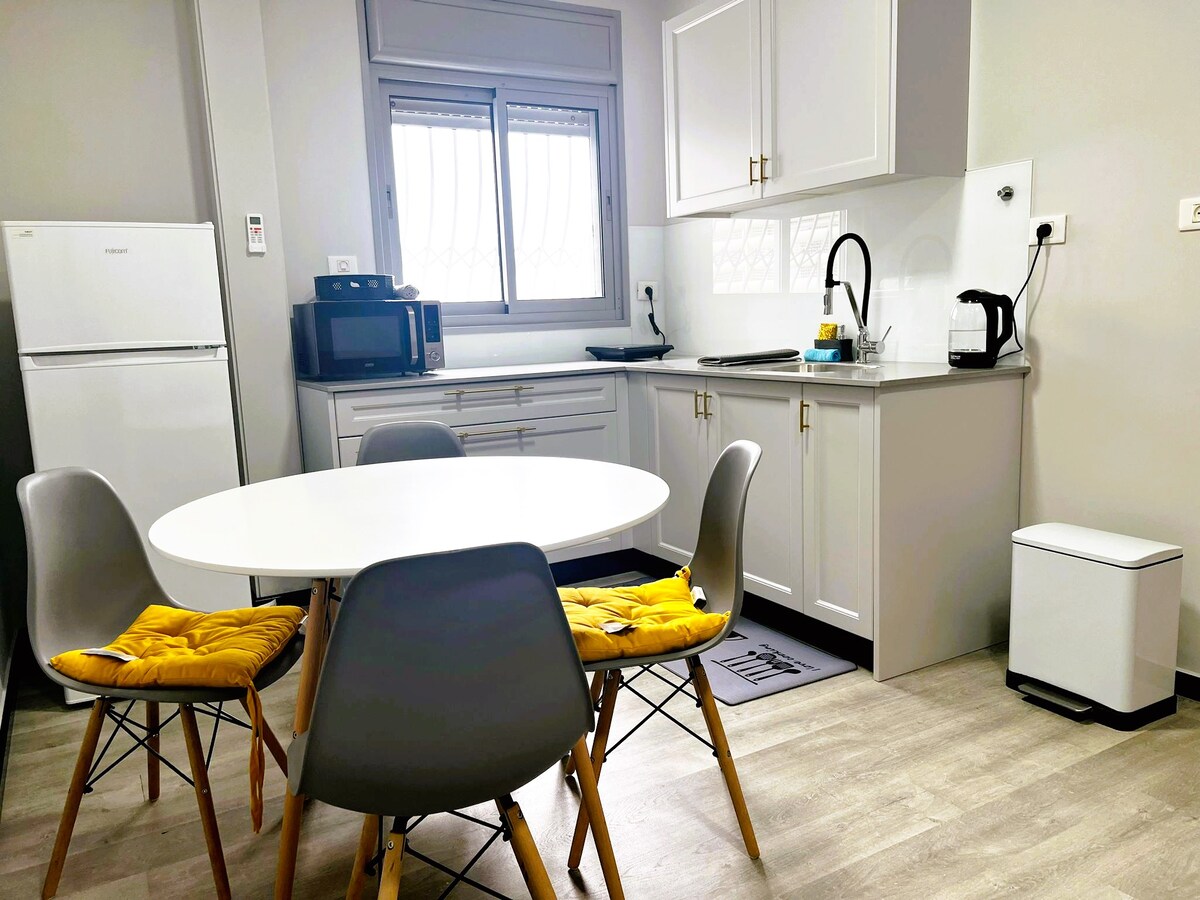 At this perfectly located mother base, you'll enjoy easy access to a specially designed studio room. Includes everything you need for a perfect vacation. Cozy double bed dining area and fully equipped kitchen. Exclusive private bathroom and shower. Perfect for couples!! The dining area and kitchen have a microwave and a refrigerator. The studio is in an apartment building that is mostly used for tourists. The entrance to the corridor leading to the apartments is via a code you will receive after booking. The best location to experience Tel Aviv on its best side. Everywhere.