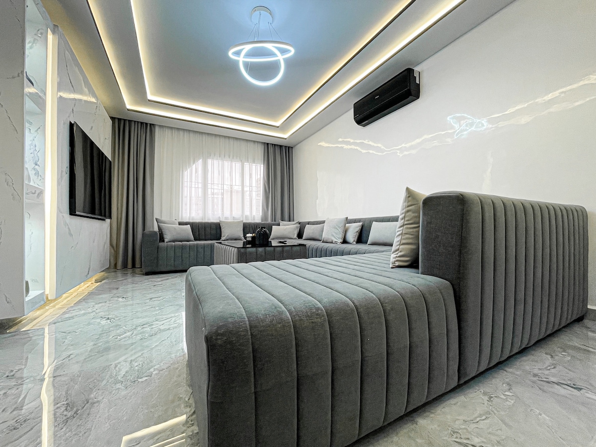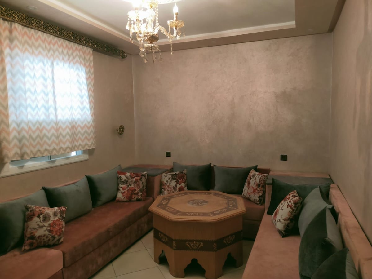 Spacieux appartement 3 chambres avec jacuzzi et un grand salon climatisé privé sur terrasse couverte. Profitez d’un moment de détente en toute intimité. À seulement 7 min de Malabata en voiture proche plage, gare TGV, restaurants et mall. Parfait pour familles ou groupes : Wi-Fi fibre, Netflix, cuisine équipée, 3 chambres confortables et tout le nécessaire pour se sentir chez soi à Tanger.