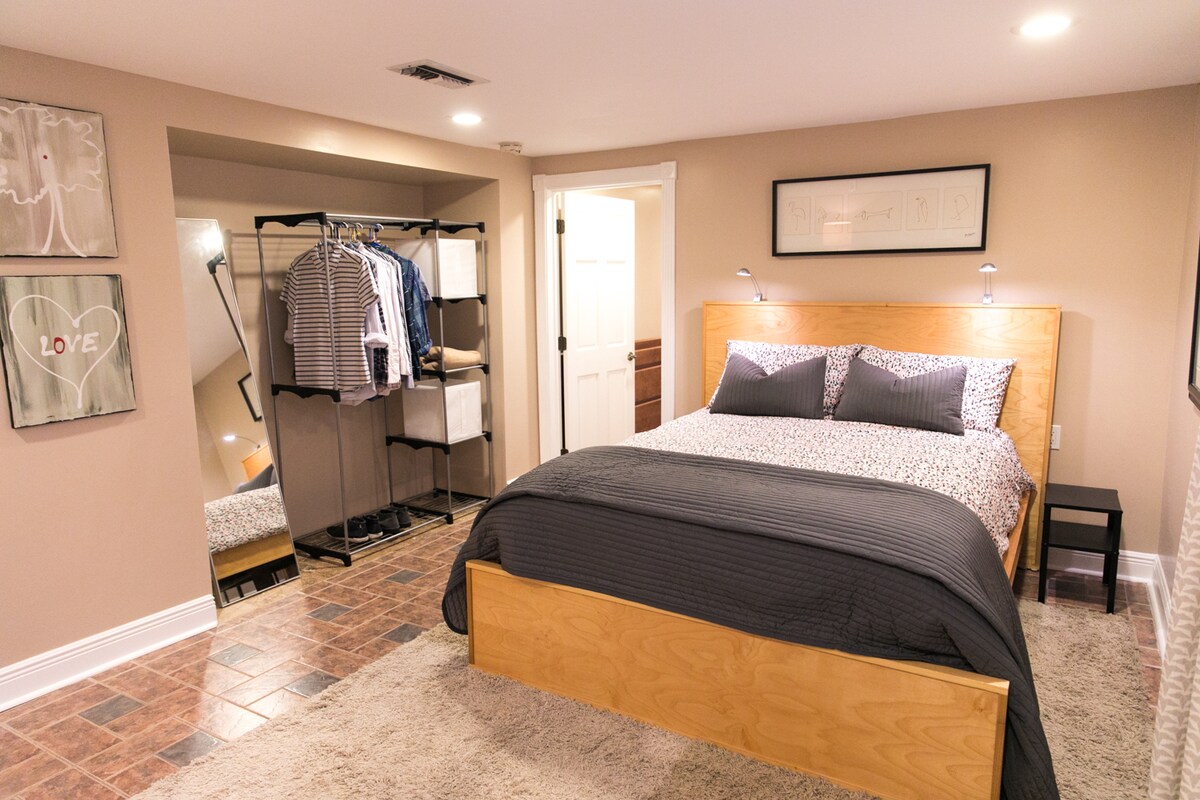 Clementine's Room is a lovely hideaway in Mid City on Bayou St. John. It is simply a bedroom/bath with tile shower, washer/dryer, and king bed. The door is next to a gazebo for outdoor time and the desk can be arranged for 2 to dine inside. There is a large Roku tv for streaming shows, a mini-fridge, microwave, electric kettle & coffee funnel for making morning coffee or tea, and dishes & flatware for heating up a snack. Also, it can be combined with our Sweet Suite for 2bed/2bath family booking