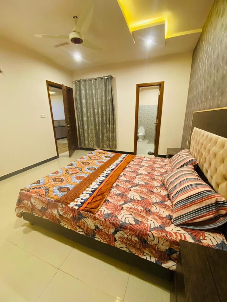 its 5star Ground floor Appartment located at Lush green area on Lower canal road Faisalabad Best for Families, business travelers & groups Its very close to all attractions like kohinoor , D.ground and Lyalpur Galleria. Gated security 24 hrs its on Ground floor with all living facilities 2 Air conditioned rooms with attached baths hot water 1 Living Levish Fully operational kitchen 🌙 Ramzan special wifi+ free Netflix Laundry area with automatic washing machine Food delivery facilities nearby