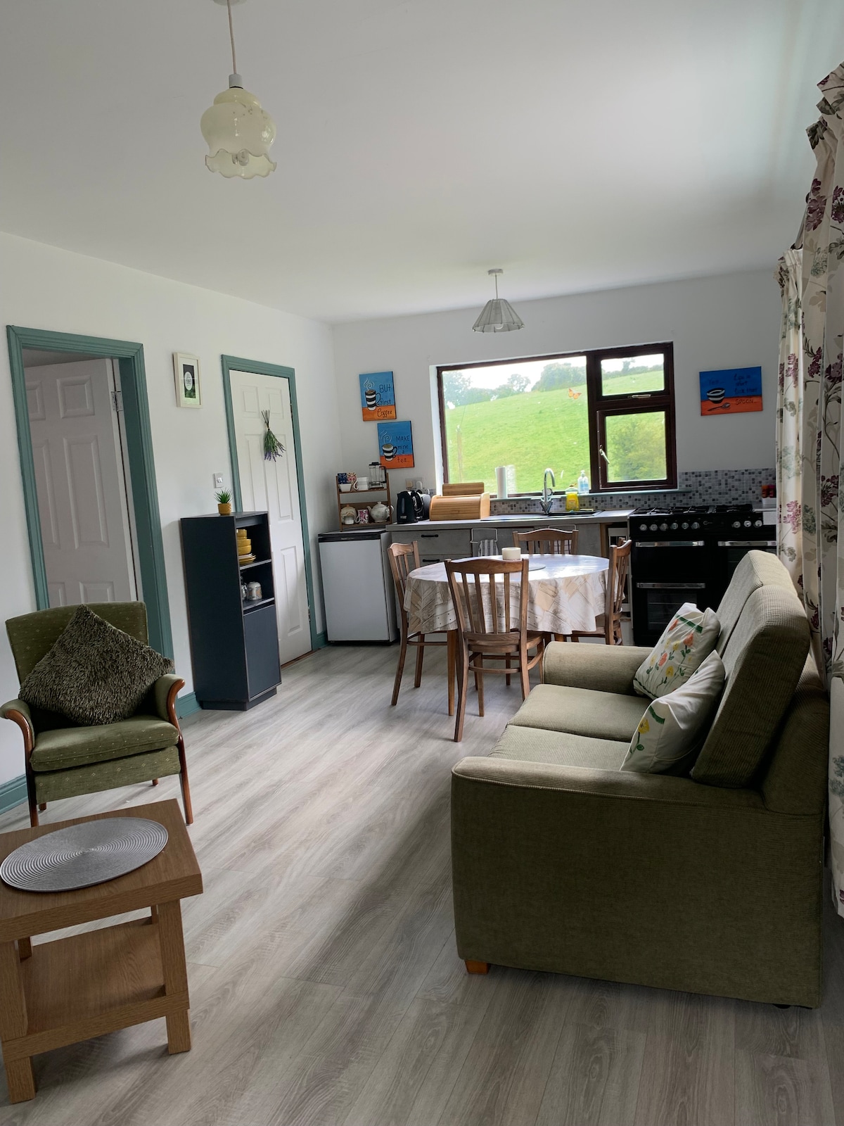 Welcome to your very own elegant, country escape offering an oasis of luxury and calm. Nestled in a small village amongst vast fields, two guests visiting for business or leisure will be able to relax, unwind and reset. This location strikes the perfect balance between the countryside, city centre and local amenities. It features a full self-catering kitchen, king bedroom and spacious living area. ✔ 10 Mins to Kinsale ✔ 20 Mins to Cork ✔ Country Escape ✔ Farm Animals ✔ King Bedroom