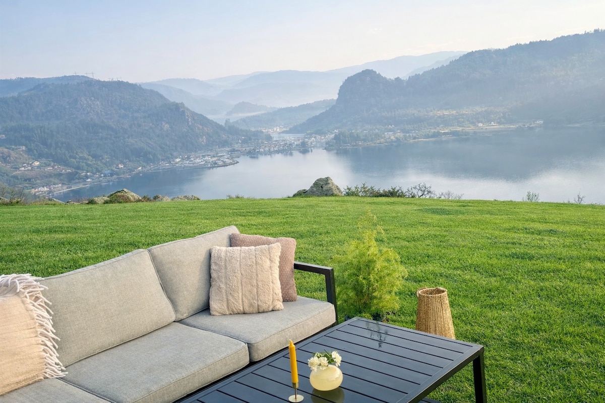 Welcome to your dream place at Åpta! Here you wake up to a magnificent view of the fjord, where the sunlight glitters in the water and nature embraces you from all sides. The holiday home is located on a hill, about 100 meters above sea level. By the lake you can swim and fish. The holiday home is sunny from early morning to late evening. This is the place for memories that last – whether you come with family, friends or just want a peaceful break from everyday life. Parking right by the cabin.