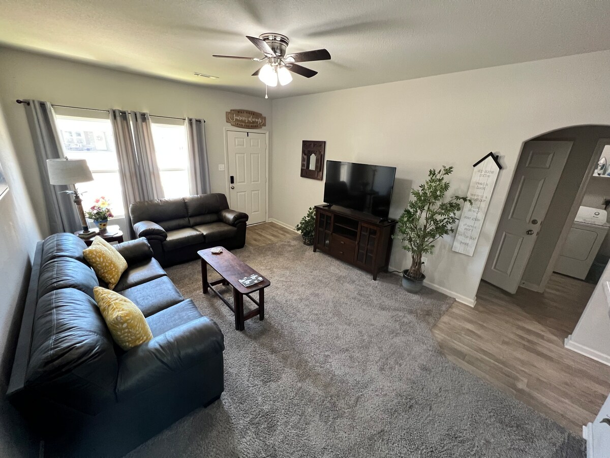This downtown Charmer is clean with a relaxing open floor plan accommodates 6 ppl, 1 queen bd 1 full bd and sofa couch. Home is perfect for couples, solo adventures, families and business travelers. Everything you need is here with a fully equipped up to date kitchen, linens, basic toiletries, central heat and air, wireless internet w/wifi flat screen TV, washer/dryer and ironing equipment.