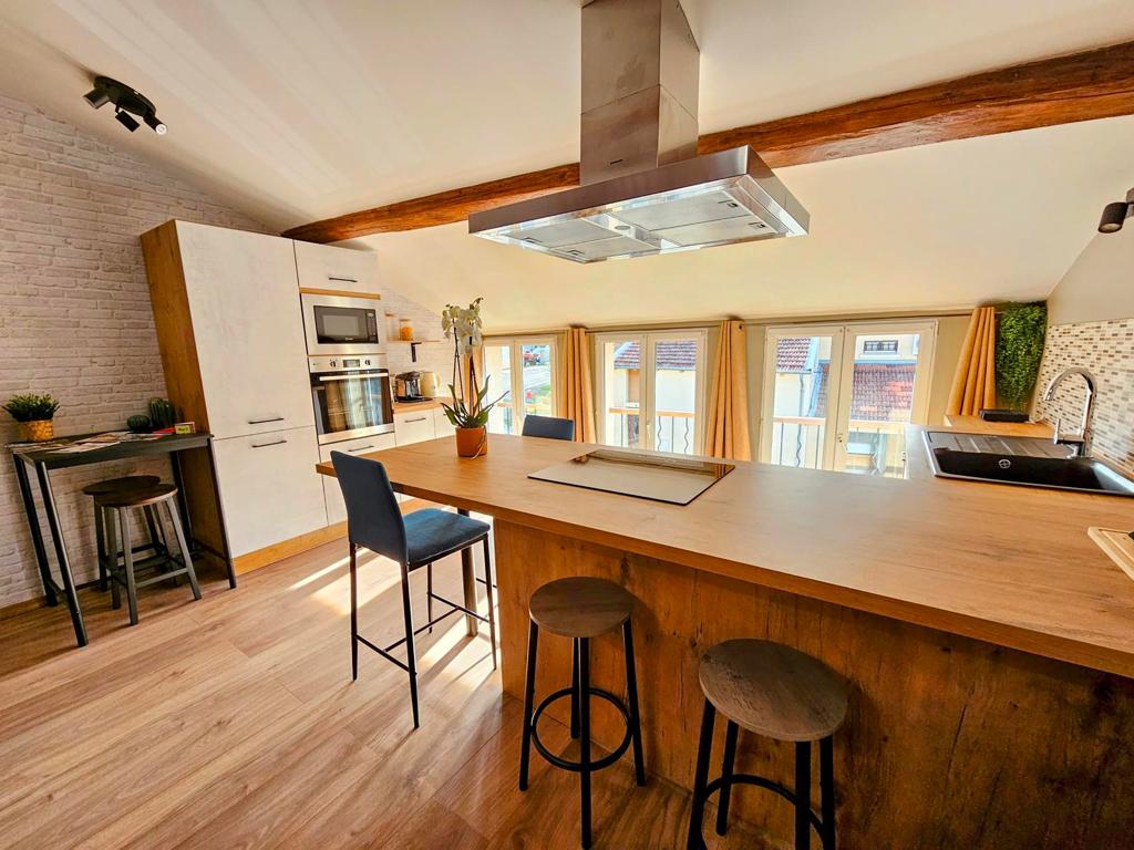 A unique design in an atypical souplex-type configuration. Come and discover this superb little 30 m2 loft located in the heart of the hyper-center, a stone's throw from Place Stanislas and opposite Rue Gourmande. Fall in love with the neo-retro decor bathed in the world of travel, all under the gaze of a 1974 Moto Guzzi. The building is backed by old fortifications of the city of Nancy where you will find in the room each stone signed by the cutter of the time.