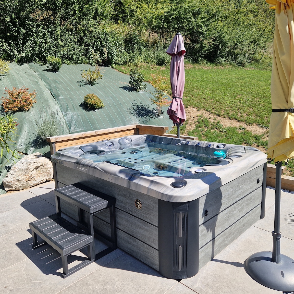 The "427" is a new independent gîte (4*) with private spa and upscale amenities: house designed for 2, large plot with terrace and panoramic views of the Bauges. It is located in Faverges-Seythenex, close to the center, 10 minutes from Lake Annecy and close to the ski resorts (Grand-Bornand, La Clusaz, Espace Diamant...). It offers Wi-Fi, modern comfort and neat decor. Ideal for relaxing, cycling, paragliding, canyoning and golf (nearby). Perfect for nature and sports getaways.