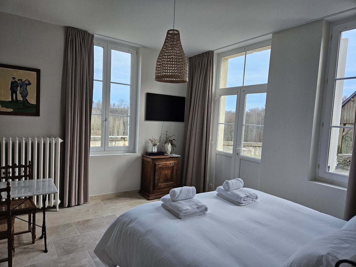 1 hour from Paris, 45 minutes from Roissy Charles de Gaulle airport and 5 minutes from Pierrefonds in the forest of Compiegne, you will stay in the center of a charming village, in a restored old mill, in the middle of a wide green estate where nature and picturesque blend. From the first days you will enjoy the park and pond as well as the banks of the rout whose currents still operate the authentic mill wheel.