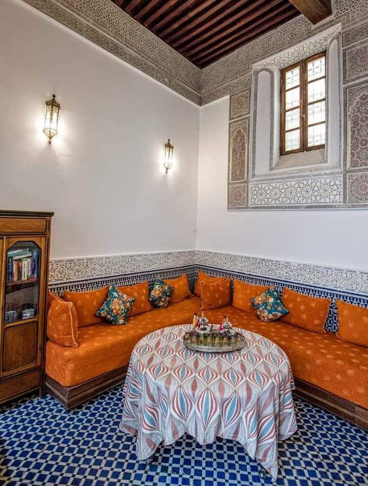 Cette maison traditionnelle récemment rénovée par certains des meilleurs artisans de Fès est une réplique plus petite des superbes palais qui se cachent derrière les hauts murs de la médina. La décoration exquise comprend des échantillons de la plupart des travaux manuels traditionnels du Maroc: plâtre sculpté, grilles décoratives en fer, tuiles colorées faites à la main, tadelakt, céramique, etc.