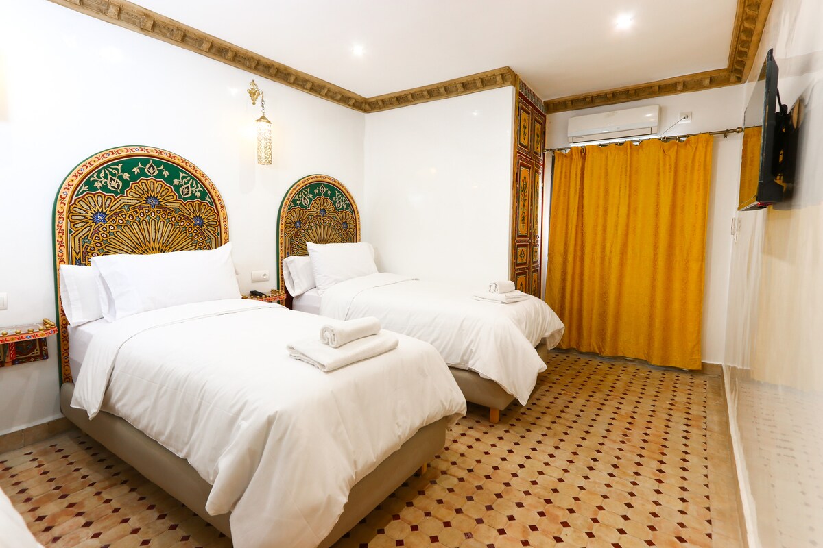 Dar IBNMAJDOUB Lala Aicha is located at the gate of the medina (old city) of Fès, just a ten-minute walk from the main historical monuments. Its strategic location offers you the opportunity to discover the splendor of Fès’ old city and the modernity of its new town. Its location is a great advantage for exploring the medina, the nearby historical monuments, the souks, as well as the must-visit restaurants of the city.