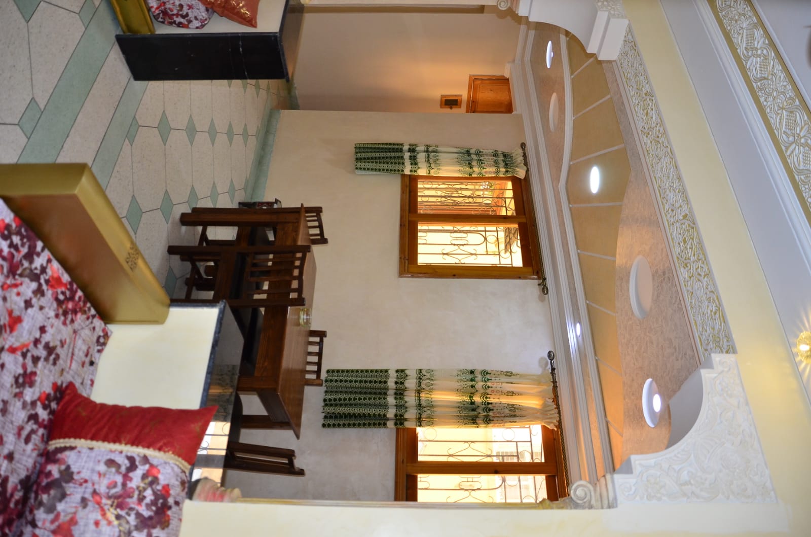 apartment located on the first floor of a clean and secure building, at the entrance of the old city of Fes. The apartment boasts an ideal location, combining tranquility and privacy, away from the noise and hustle of the medina, while still being close to all essential amenities such as shops, restaurants, and public transport. A perfect choice for those seeking an authentic experience in a calm and comfortable setting.