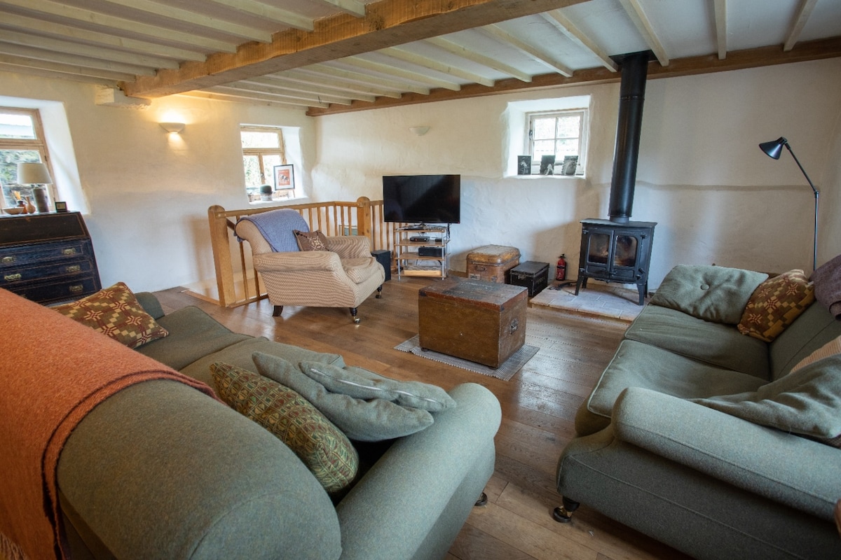 The Barn at Tan Y Rhiw nestles in the Nanmor valley, surrounded by ancient woodland, with spectacular views of Moel Ddu. A safe place to retreat from the world, and reconnect with nature, over two miles from the main road. Relaxing in the private garden listen to owls hooting or cuckoos calling. Walking from the door leads you to an old drovers track, or higher up through bilberry scrub to Cnicht, the Welsh Matterhorn, or along lanes and paths to secluded swimming spots in rivers and lakes.