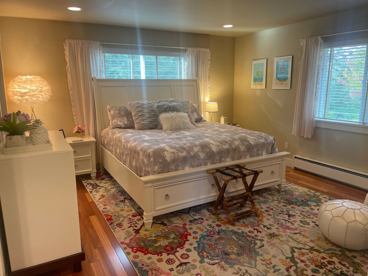 Spacious 1 bd apt w/impressive views of Padilla Bay & unforgettable sunsets, located at the end of a long driveway w/a private covered entrance. Large bdrm w/king size bed & walk-in closet. Fully covered deck w/gas firepit & comfy sectional. Streaming TV + reliable WIFI. This is the place to unwind & relax after a day of work or play. Pick up local ingredients at nearby markets to craft a meal in the fully stocked kitchen or discover local fare at nearby restaurants & bakeries. Onsite W/D.