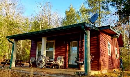Breathe the fresh mountain air and relax in the private, wooded country setting, with resort amenities on site. Spacious 1-level cabin. Adjustable queen bed & trundle daybed couch. Free mini golf and game center on site as well as gem mining with fee and reservations. Near lake Hiwassee's marina with boat and canoe rentals. and a waterfall hike a short drive away. Casino, rafting, wineries, breweries under an hour. Playground and walking trails. $40 pet fee for up to 2 dogs. No cats.