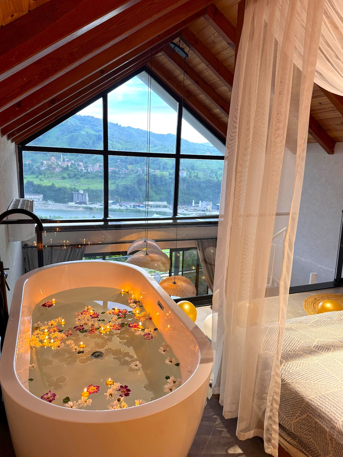 Breakfast is included in the price. Our future guests can experience the waterfall and stream view of our 100 square meter wooden attic with their families, and they can also experience our own jam and honey at breakfast. For our guests who have no idea about places to visit, they can review the guide I have prepared and enjoy their vacation to the fullest